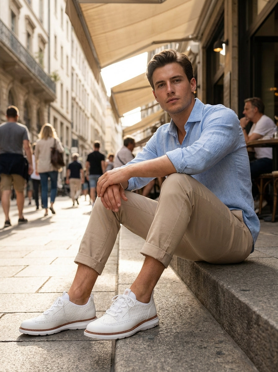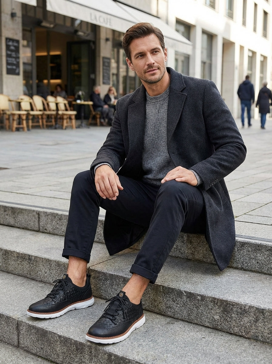 This men's lace-up walking sneaker features a clean casual design that works easily with everyday outfits. The lace-up front and low-cut shape create a sharp, balanced look suited to day-to-day wear. Suitable for daily routines, casual outings, or long hours on the go.