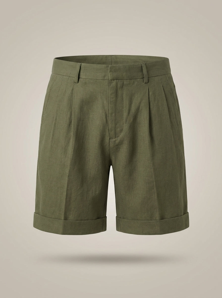 Men's Pleated Slim Fit Shorts | Rolled Hem
