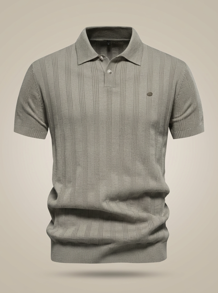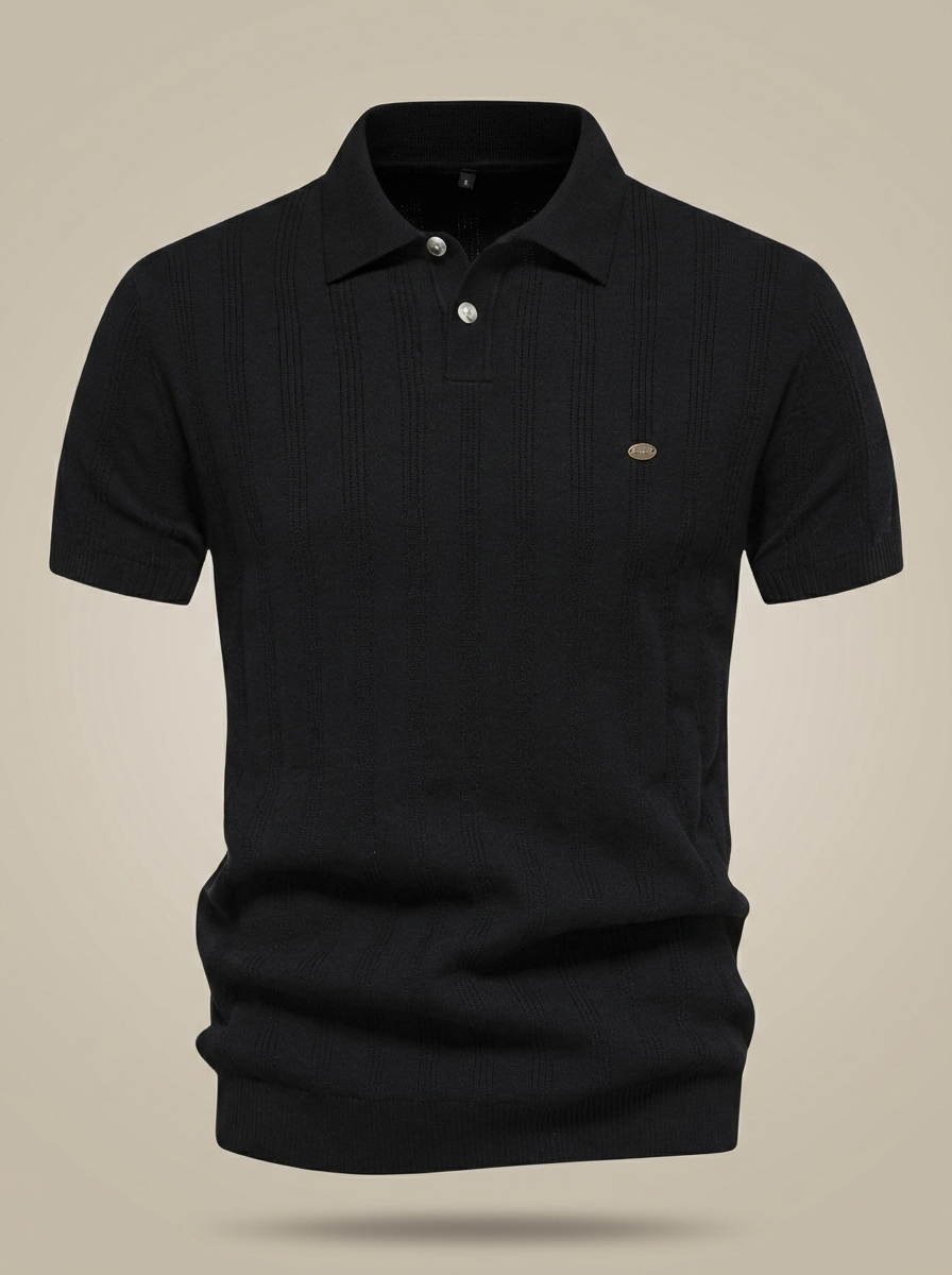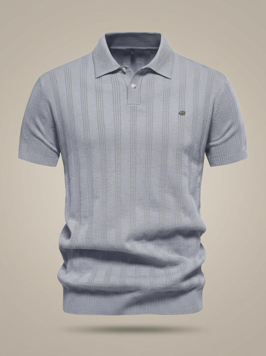 Men's Short-Sleeved Button-Down Polo Shirt | Ribbed