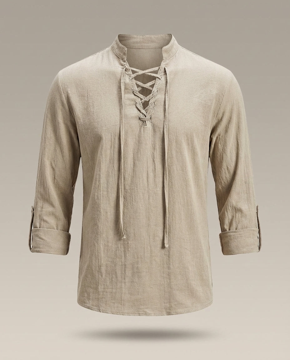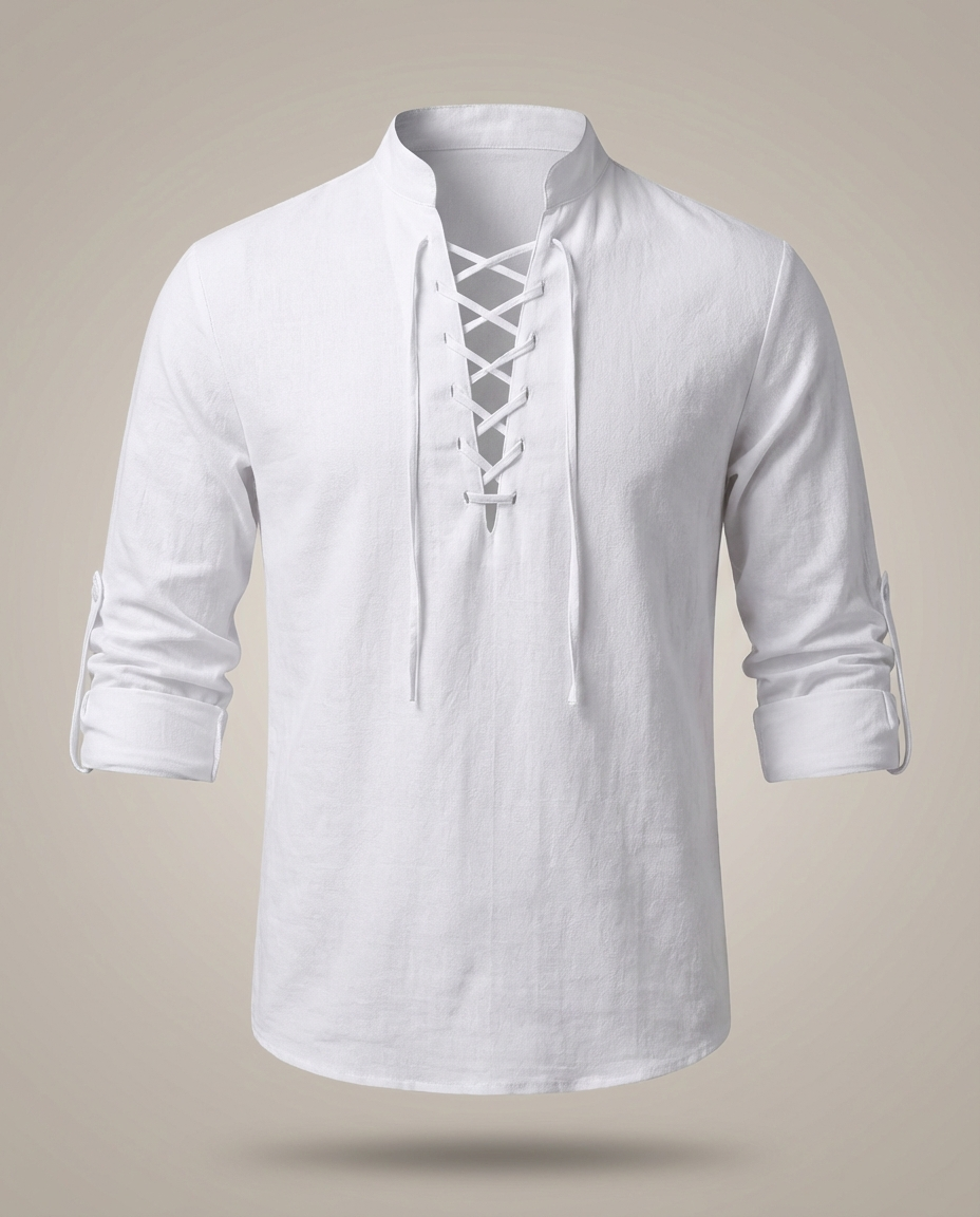 Men's Stand-Up Collar Long Sleeve Casual Shirt | Drawstring