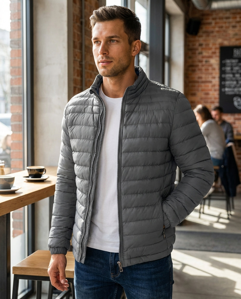 Men's Stand-up Collar Quilted Jacket | Zipper