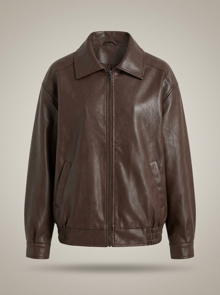 This women's zip-up jacket features a turn-down collar, long sleeves, and a front zipper for a simple and clean look. The straight cut creates a balanced silhouette, while the design allows for easy layering over everyday outfits. Suitable for casual wear or daytime styling.