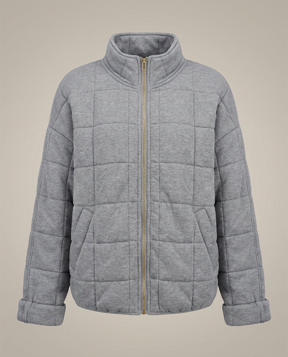 This women's jacket features a quilted design with a round neckline and long sleeves for a clean seasonal look. The structured silhouette and practical pocket detail create a balanced design that pairs easily with different everyday outfits. Suitable for daily wear, casual outings, or cooler-weather styling.